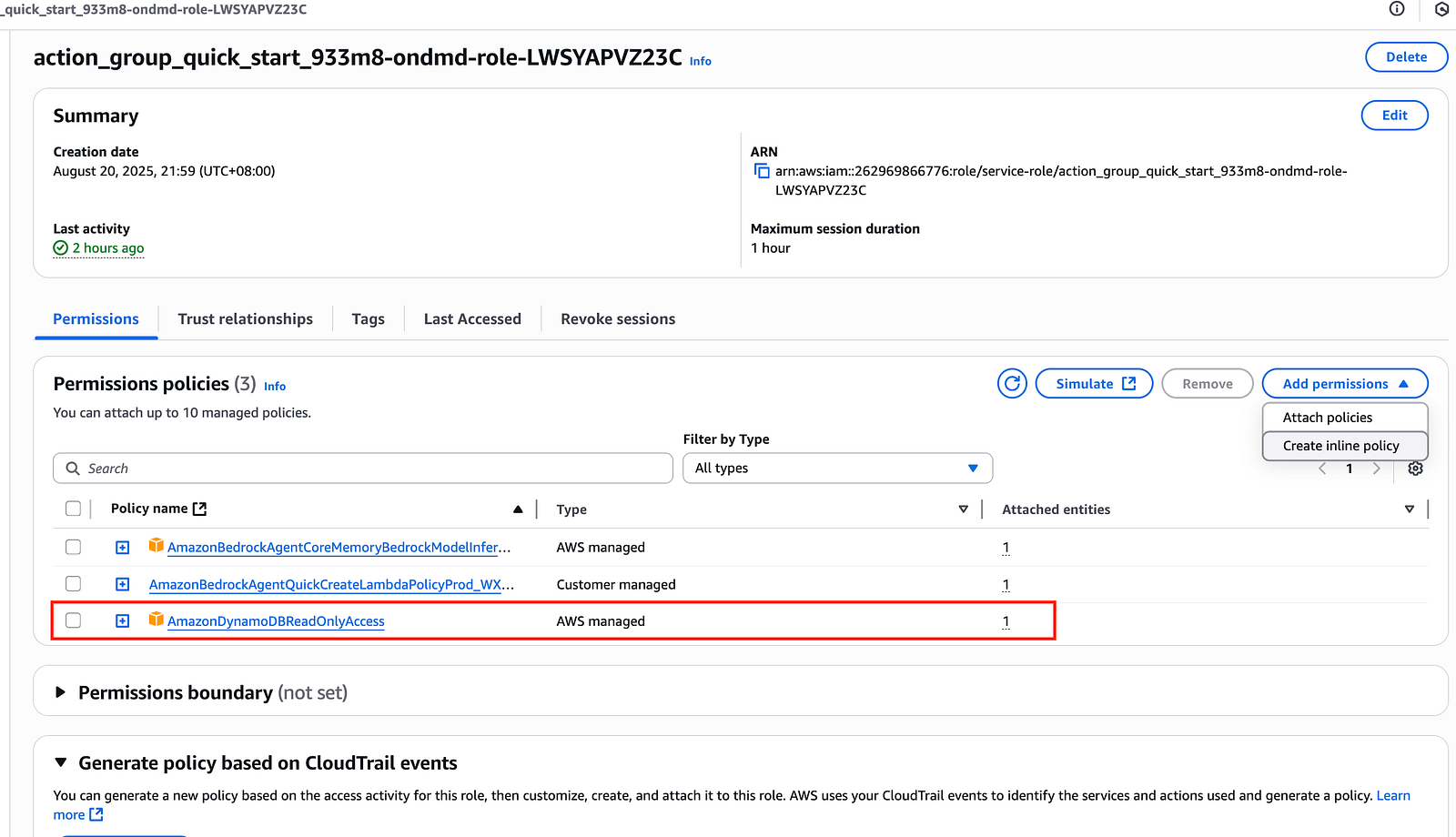 因為這篇文章的需求需要存取 DynamoDB ,所以 Lambda 綁定的 role ,需要加上存取 DynamoDB 的 Policy。