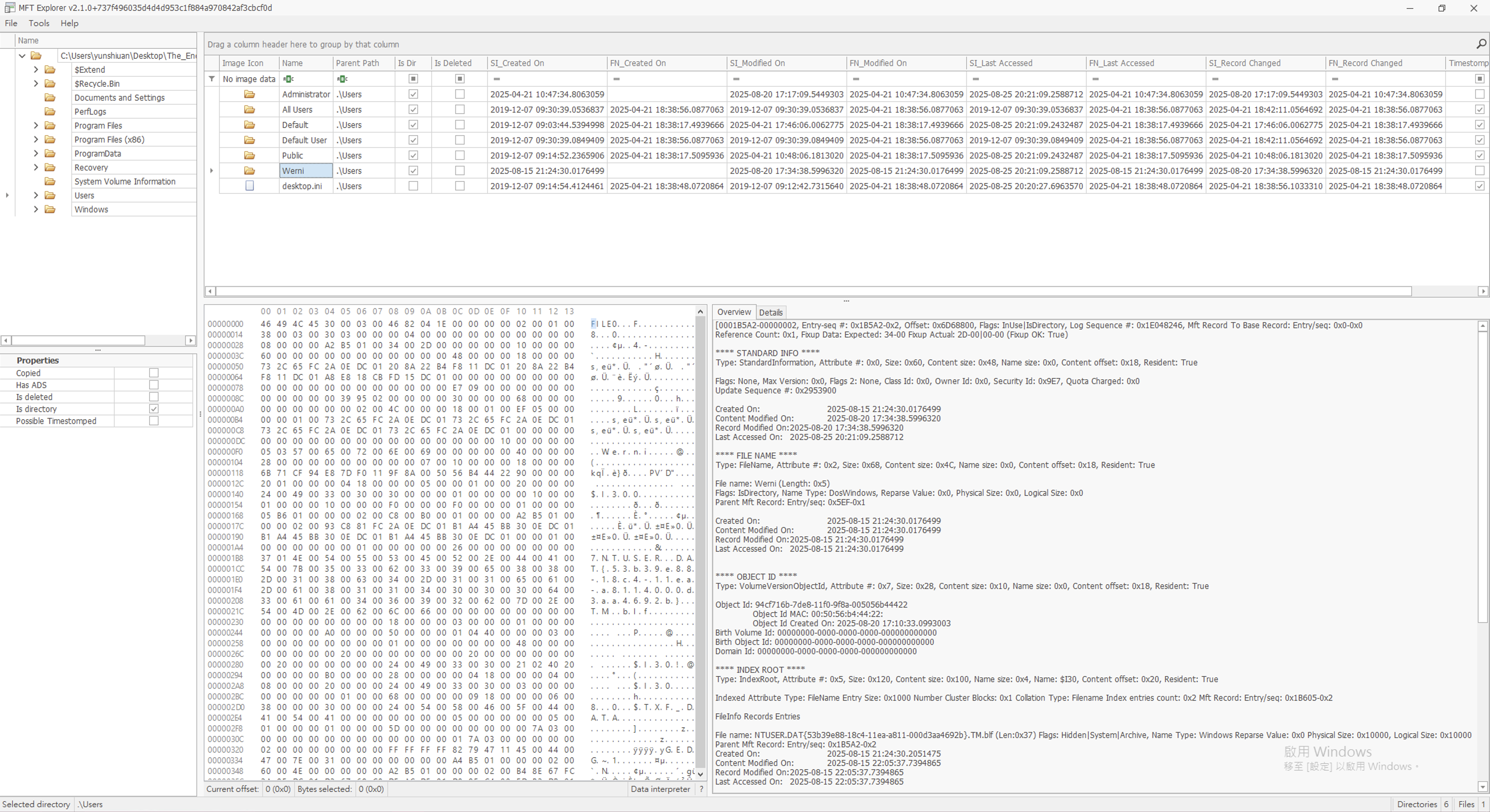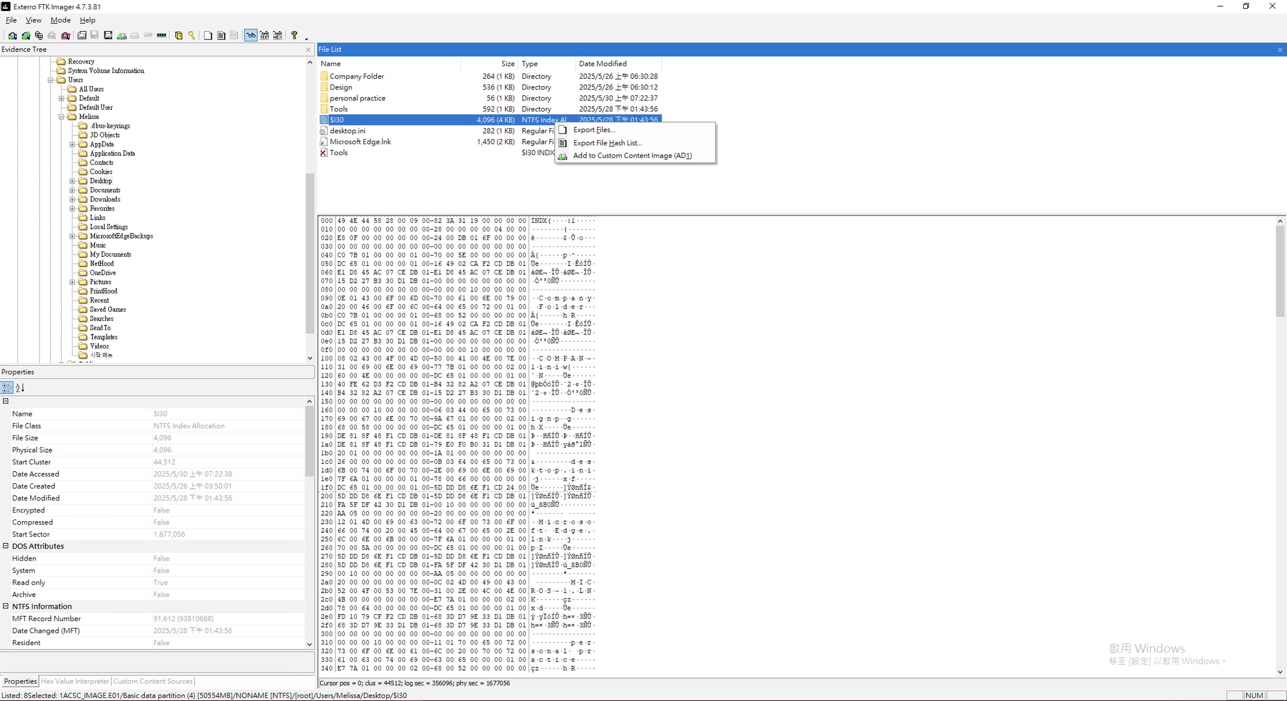 首先找到要鑑識的目錄,並提取其 $I30