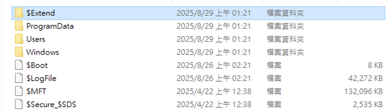 因此 NTFS 的 Volume 中會建立許多隱藏的系統檔案,這些檔名都以$