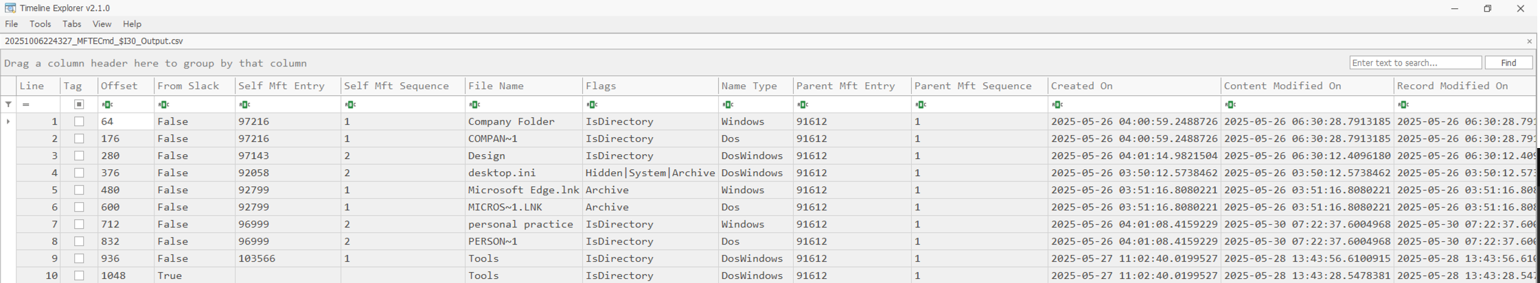 透過 NTFS Log Tracker 和 MFTECmd 工具,我們可以分析這些系統檔案,重建檔案操作的時間線,獲得更多線索