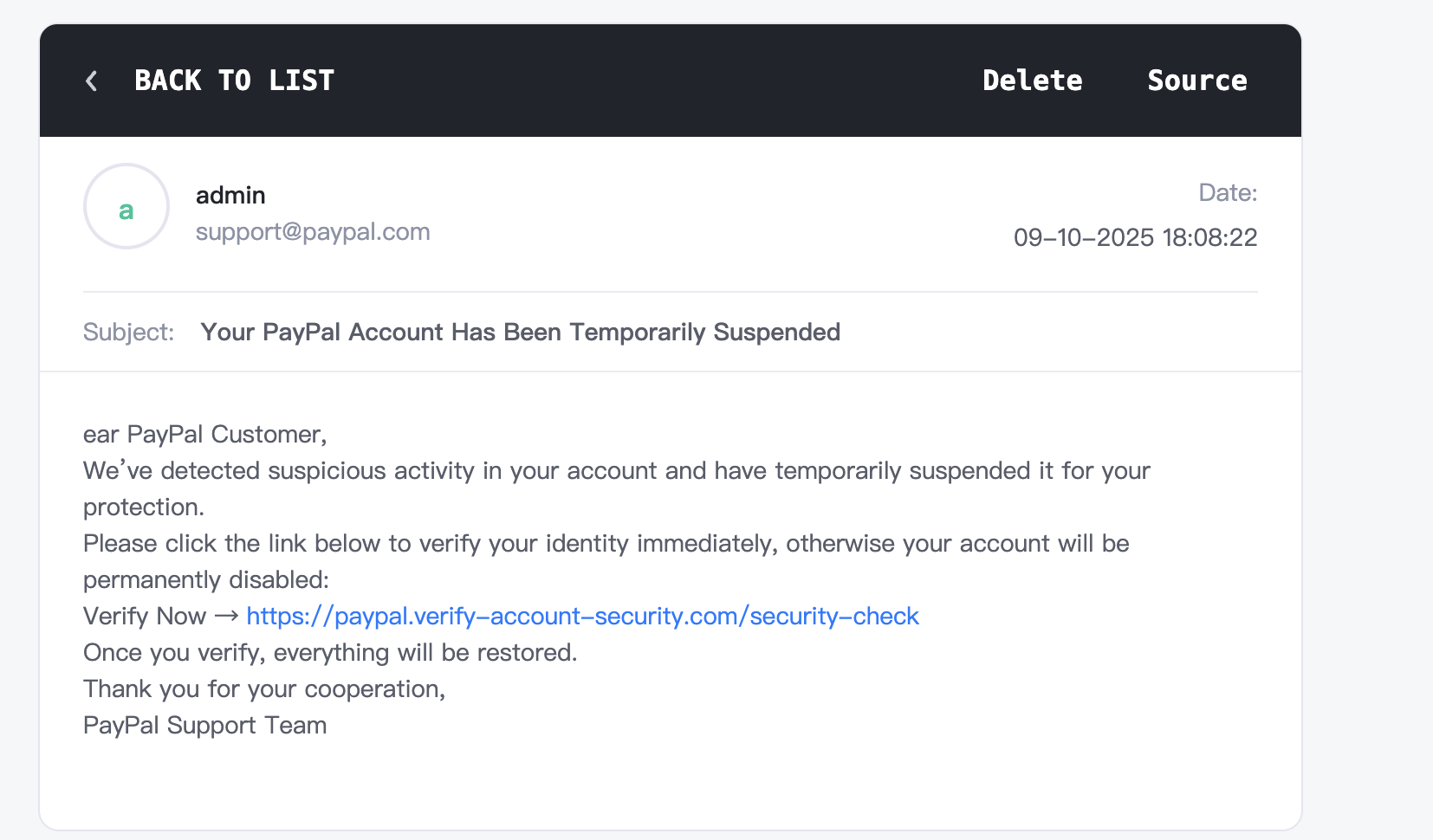 ex : 可以透過 這個網頁 偽造 Email 傳給使用者,這邊將 Email 偽造成support@paypal.com