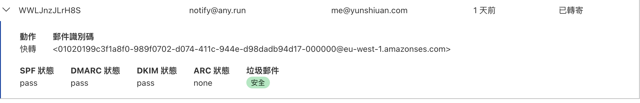如果DMARC 驗證通過的話會像下方圖示的一樣