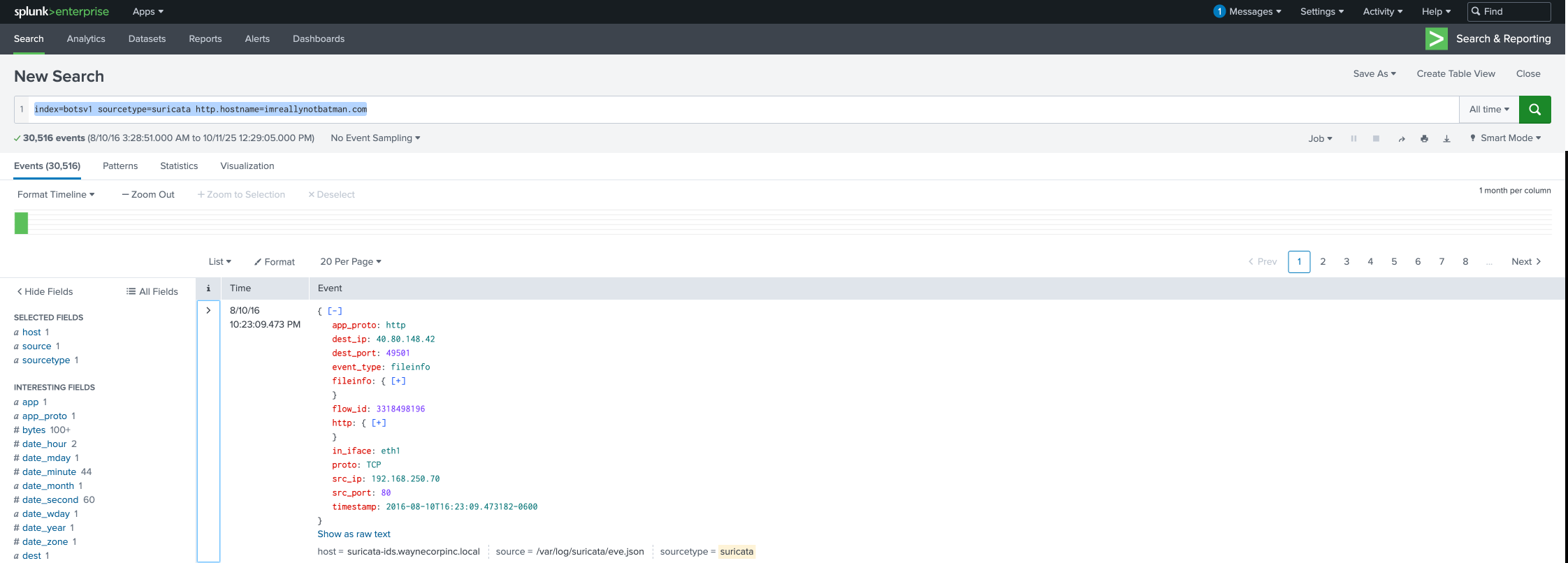 index=botsv1 sourcetype=suricata http.hostname=imreallynotbatman.com