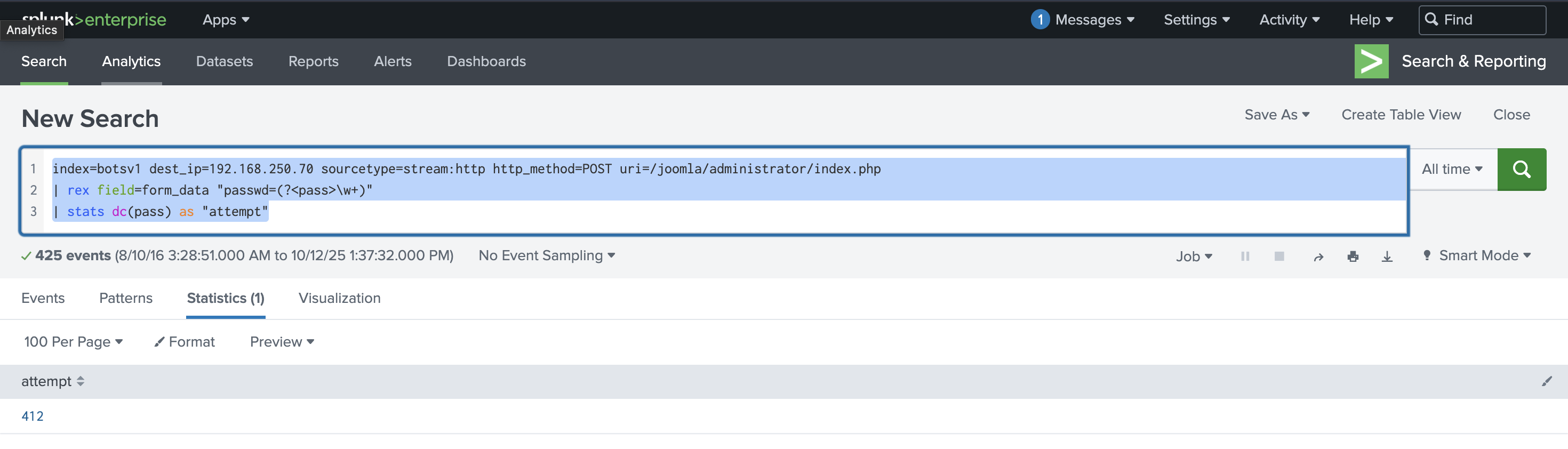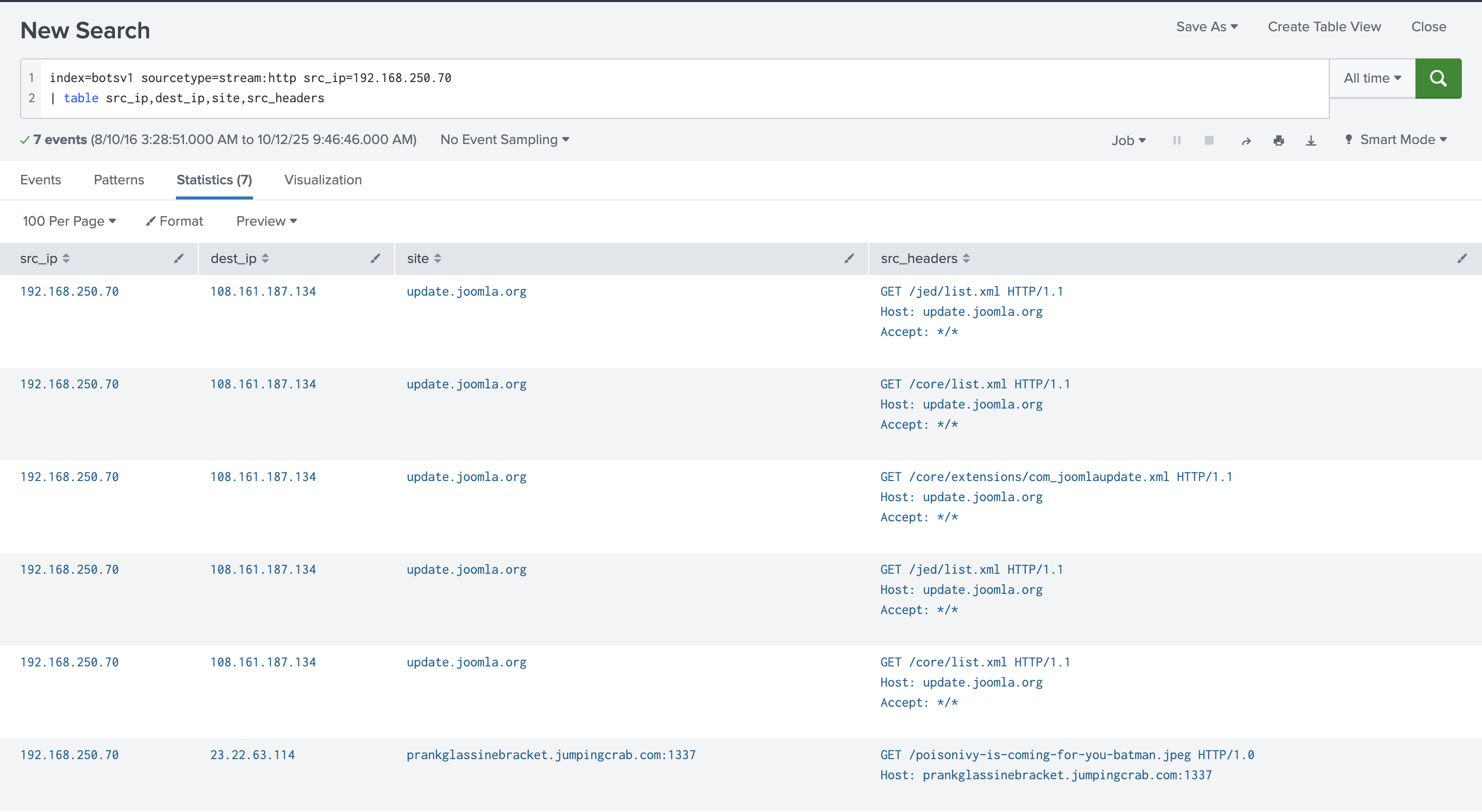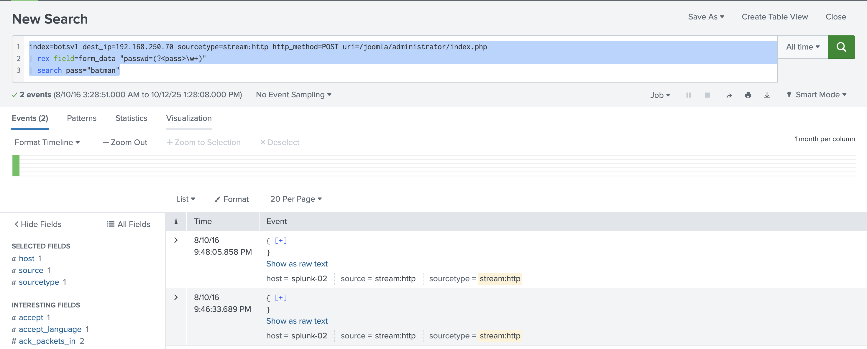 index=botsv1 dest_ip=192.168.250.70 sourcetype=stream:http http_method=POST uri=/joomla/administrator/index.php