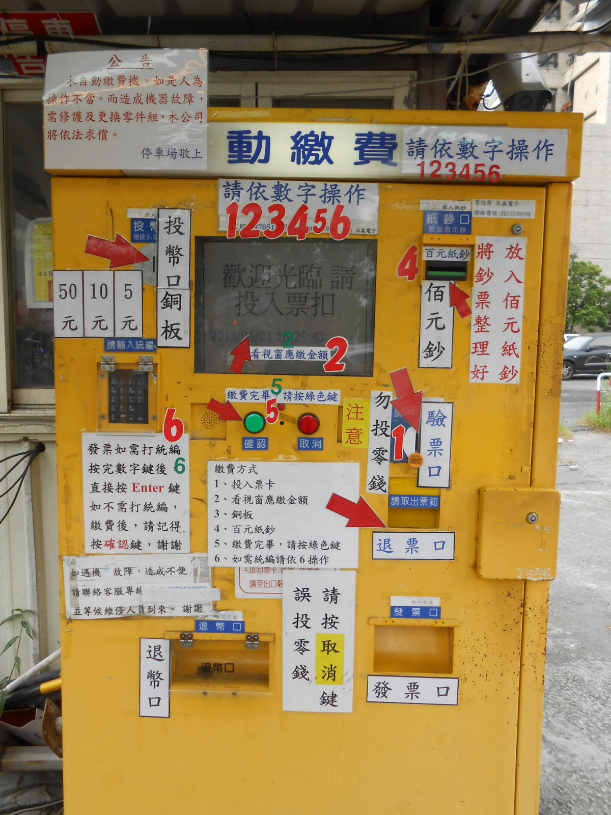 就像這個停車場收費機, 就算他寫再多的訊息, 貼再多告示, 還是會有一部分消費者, 誤將停車幣塞到硬幣收費孔去; 這是很典型的, 只從工程角度去思考出來的人機介面, 工程師最大的迷思就是--我都把說明寫這麼清楚了, 你為什麼還不看著說明操作?: