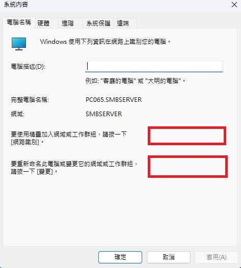 各位好,如題,新電腦在要加入公司網域時,第一次未加入時<網路識別>及<變更>按鈕都還可以選,但無論第一次加入網域成功或失敗後這兩個選項都消失無法再加入或退出網域,如下圖所示