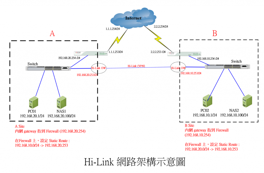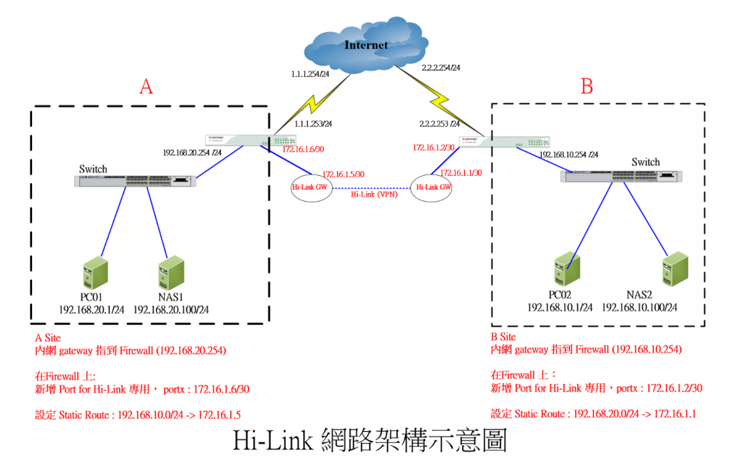 公司有A地點和B地點,2邊有NAS需要互聯,有檔案互相存取的需求,有申請遠傳 VPN ADSL頻寬60M/20M(線路還是中華電信來裝的),我用電腦直接上數據機,A點網段是192.168.20.0~255 ,B是192.168.10.0-255,2邊互聯,gateway是255.255.255.0,我需要那些設備和設定方式,請麻煩各位高手指導下,因為之前沒這方面的經驗,所以來這求救,感謝!